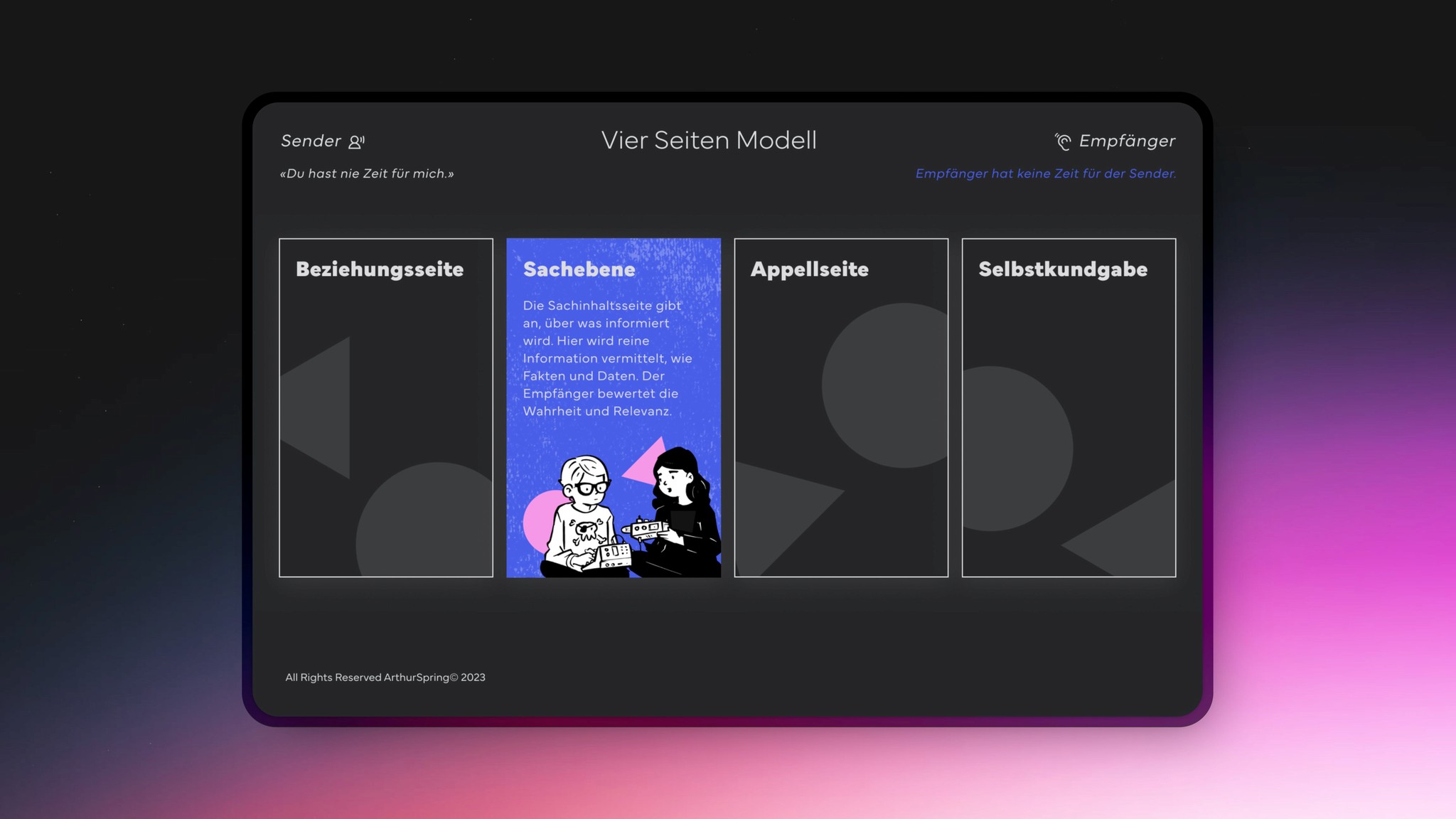 Interactive Four-Sides Model prototype with hoverable cards and visual examples.