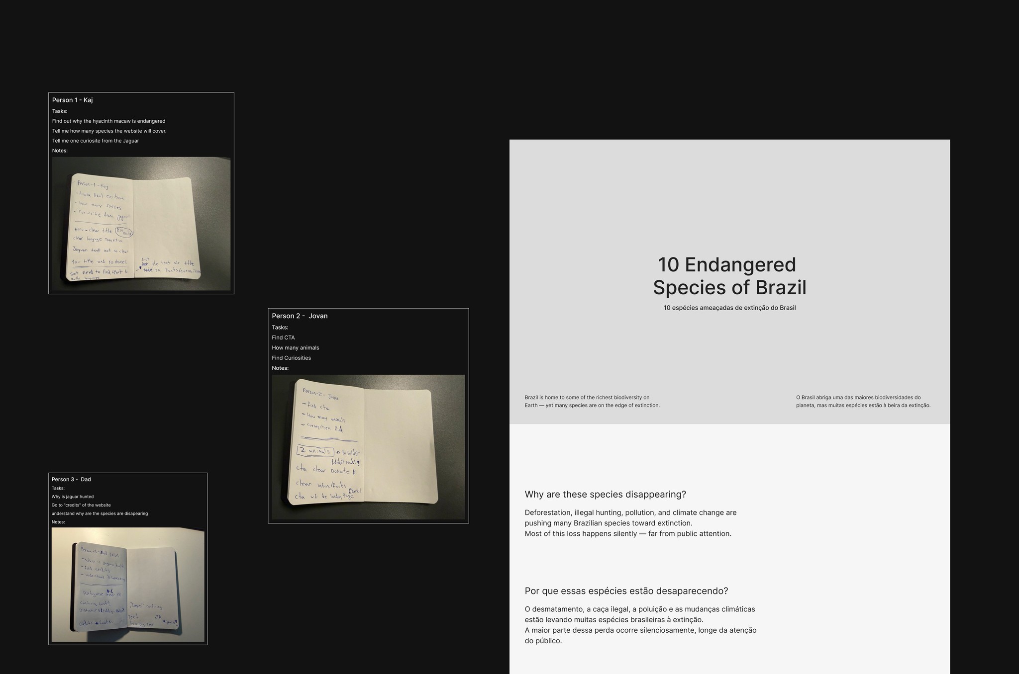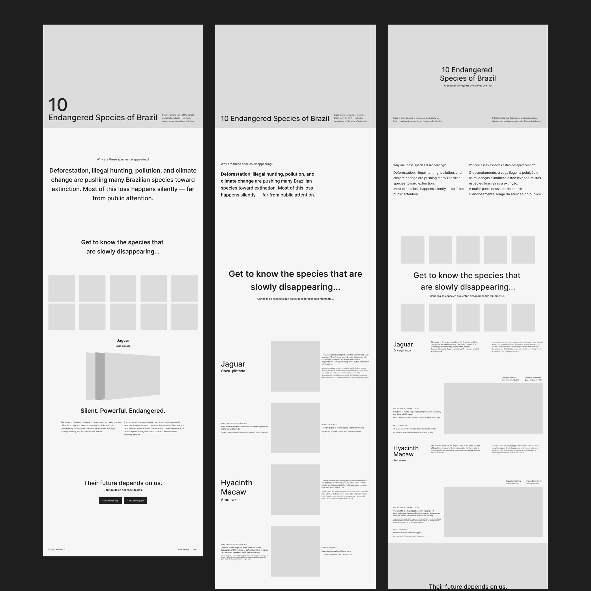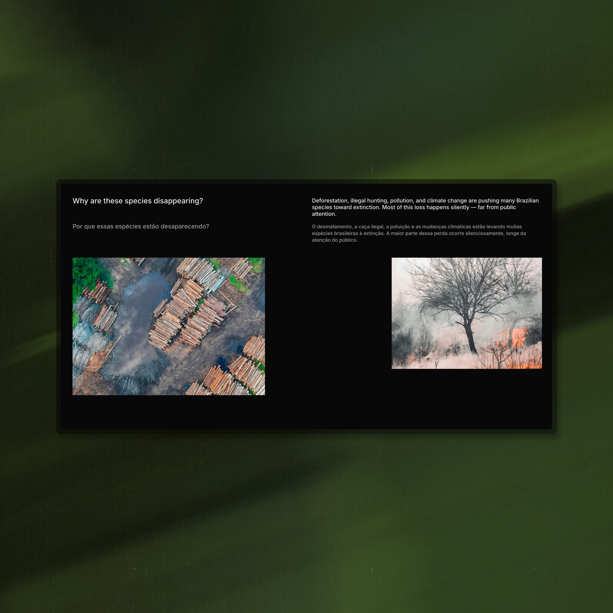 Since people naturally feel connected to animals, I built the experience around that emotion, showing how they’re slowly disappearing. The project focuses on 10 species, inspired by the 100 Lost Species concept but scaled to fit the timeframe.
