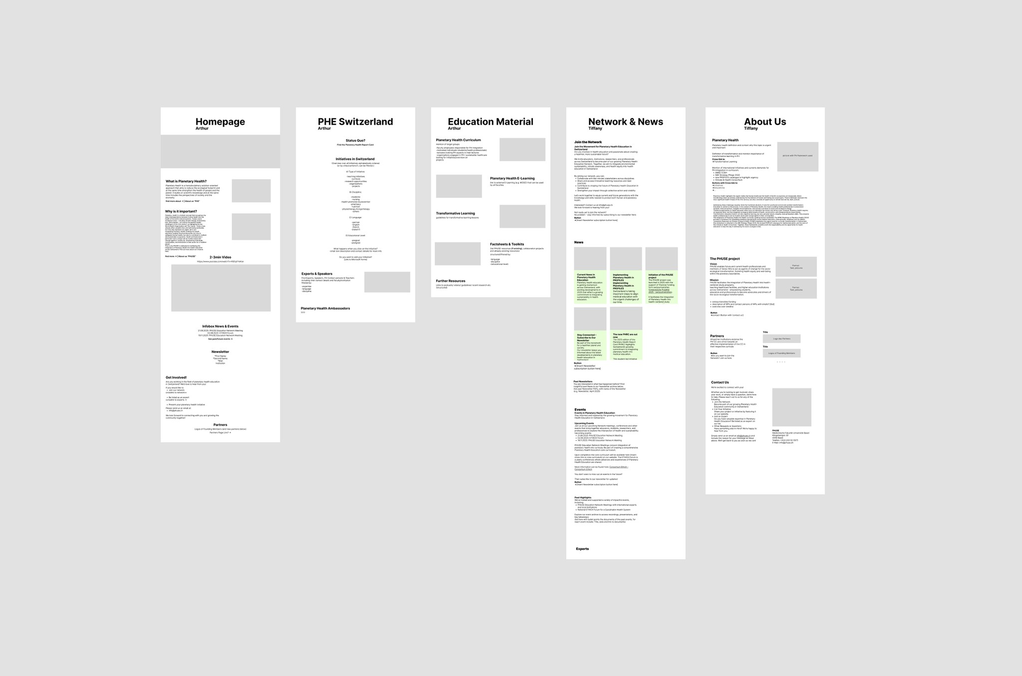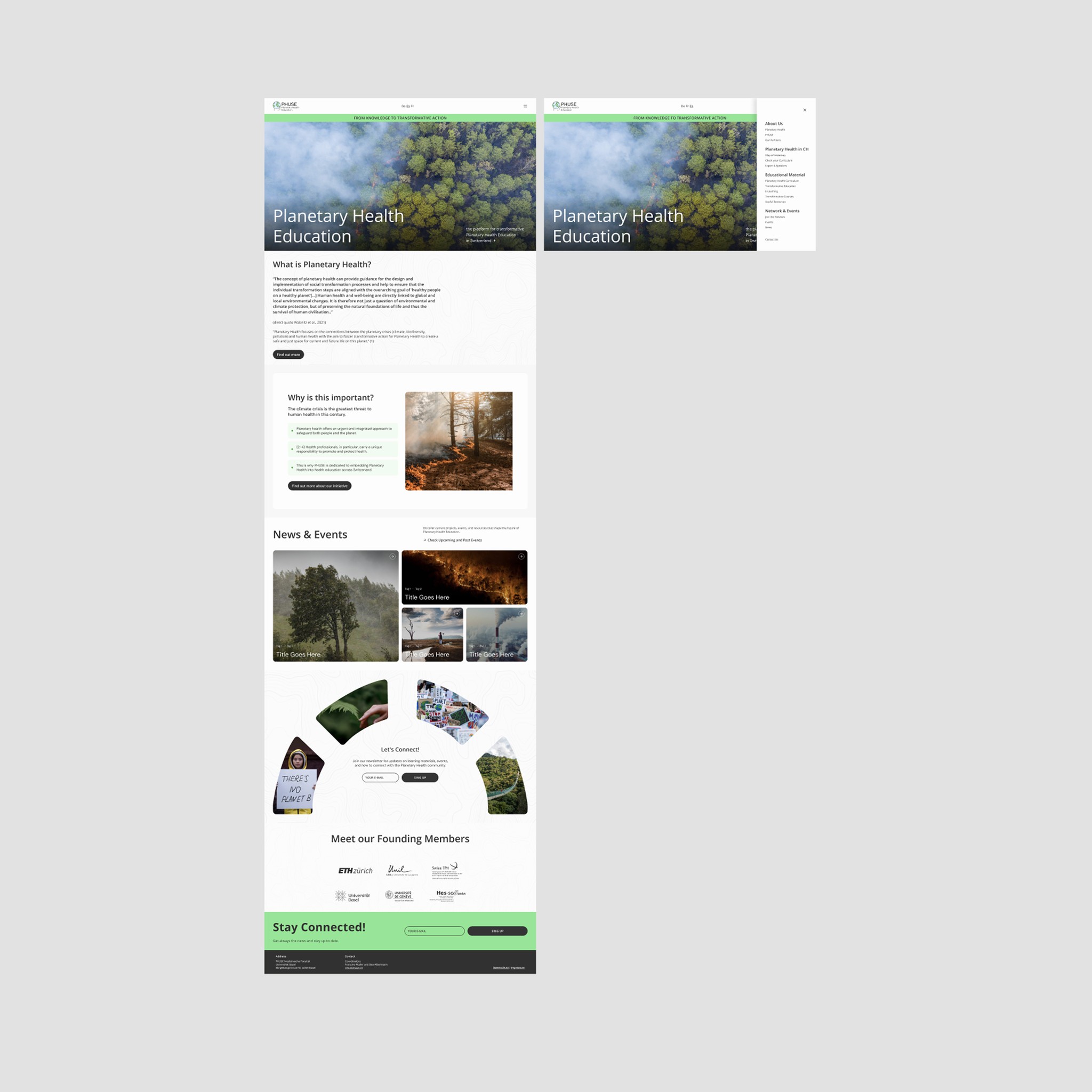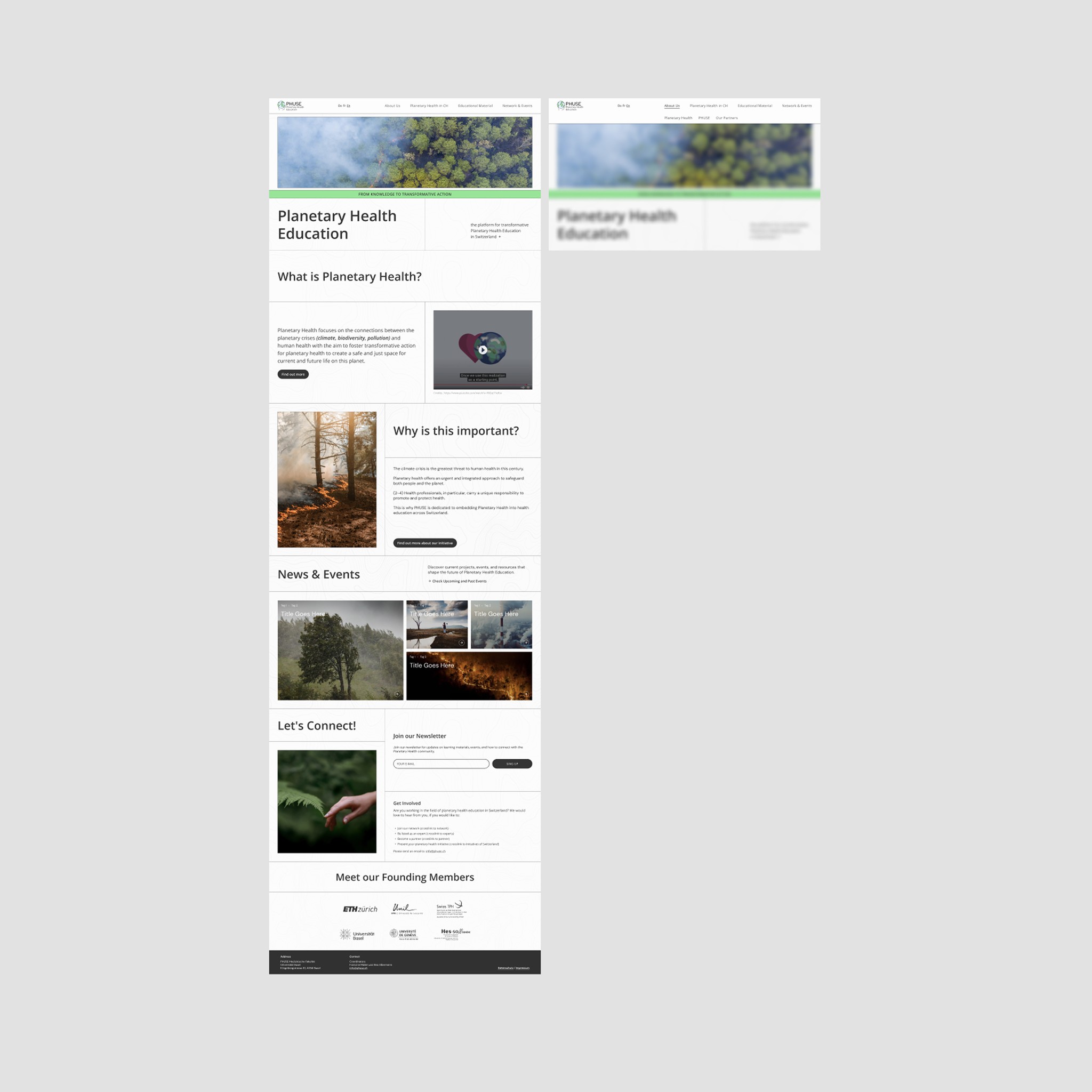 In Figma, we started with low-fidelity wireframes to focus on layout, navigation, and content prioritization before moving into visual refinement. The goal was to create a clear, accessible, and scalable structure that supports both first-time visitors and experienced members of the Planetary Health network.