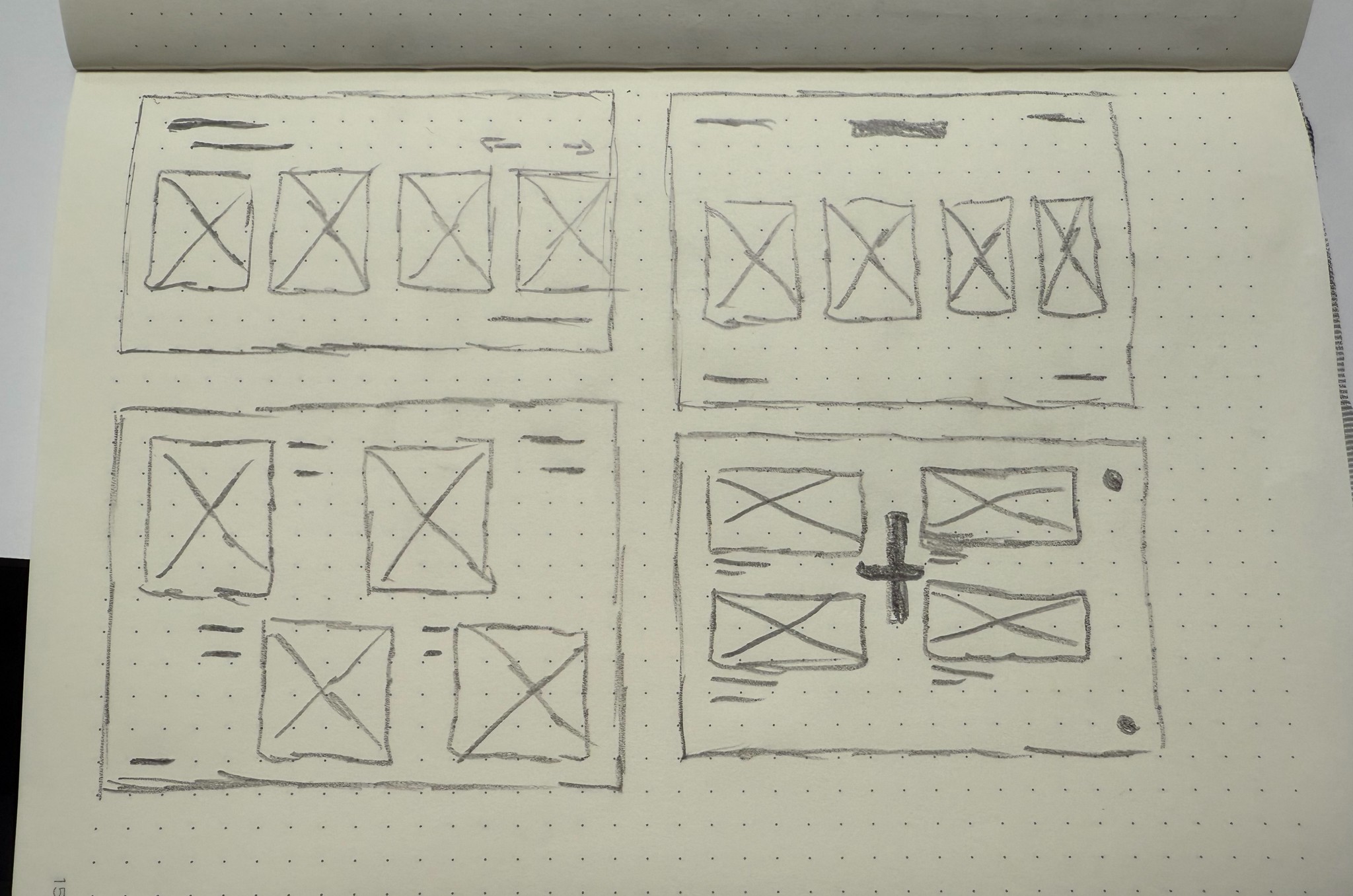 For the wireframes, I created a few variants on how to display the four cards I wanted to work with, always trying to integrate an explanation alongside them. I experimented with layouts, sizes, and positions to see which arrangement made the interaction most intuitive. The goal was to make the user understand each layer of the Four-Sides Model without feeling overwhelmed, while keeping the design clean and interactive.